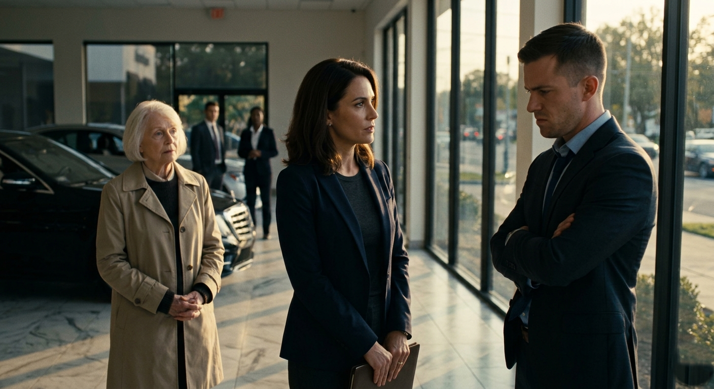The marble floor reflected everything — the gleaming hoods of million-dollar cars, the chandelier light, and the look on my mother’s face when she reached…